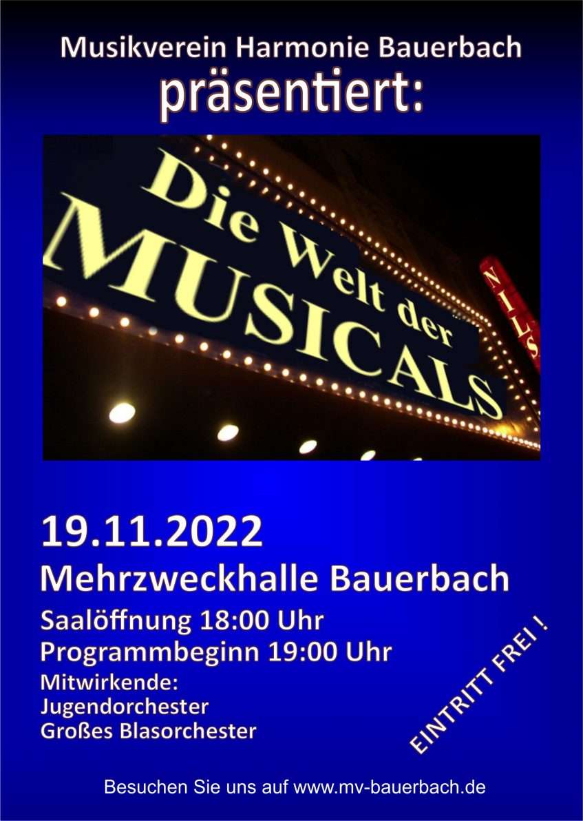 Nach 1092 Tagen Pause spielte am vergangenen Samstagabend in Bauerbach wieder so richtig die Musik. Denn der Musikverein Harmonie Bauerbach hatte zu seiner diesjährigen Jahresfeier in die Mehrzweckhalle eingeladen. Der Abend wurde vom Jugendorchester unter der Leitung von Simon Sandrock eröffnet. Sie vermittelten u.a. mit Liedern aus Moulin Rouge, Grease und Tarzan schon einen ersten Eindruck, was den Zuhörer unter dem Motto des Abends „Musicals“ erwarten würde. Mit flotten Rhythmen und verträumten Passagen zeigten die Jungmusiker ihre gesamte Bandbreite und nach dem ersten Applaus war auch ihre anfängliche Nervosität abgefallen. Die rund 50 Musikerinnen und Musiker des Großen Blasorchesters hatten während dem Auftritt des Jugendorchesters bereits voller Vorfreude gewartet. Nun…
